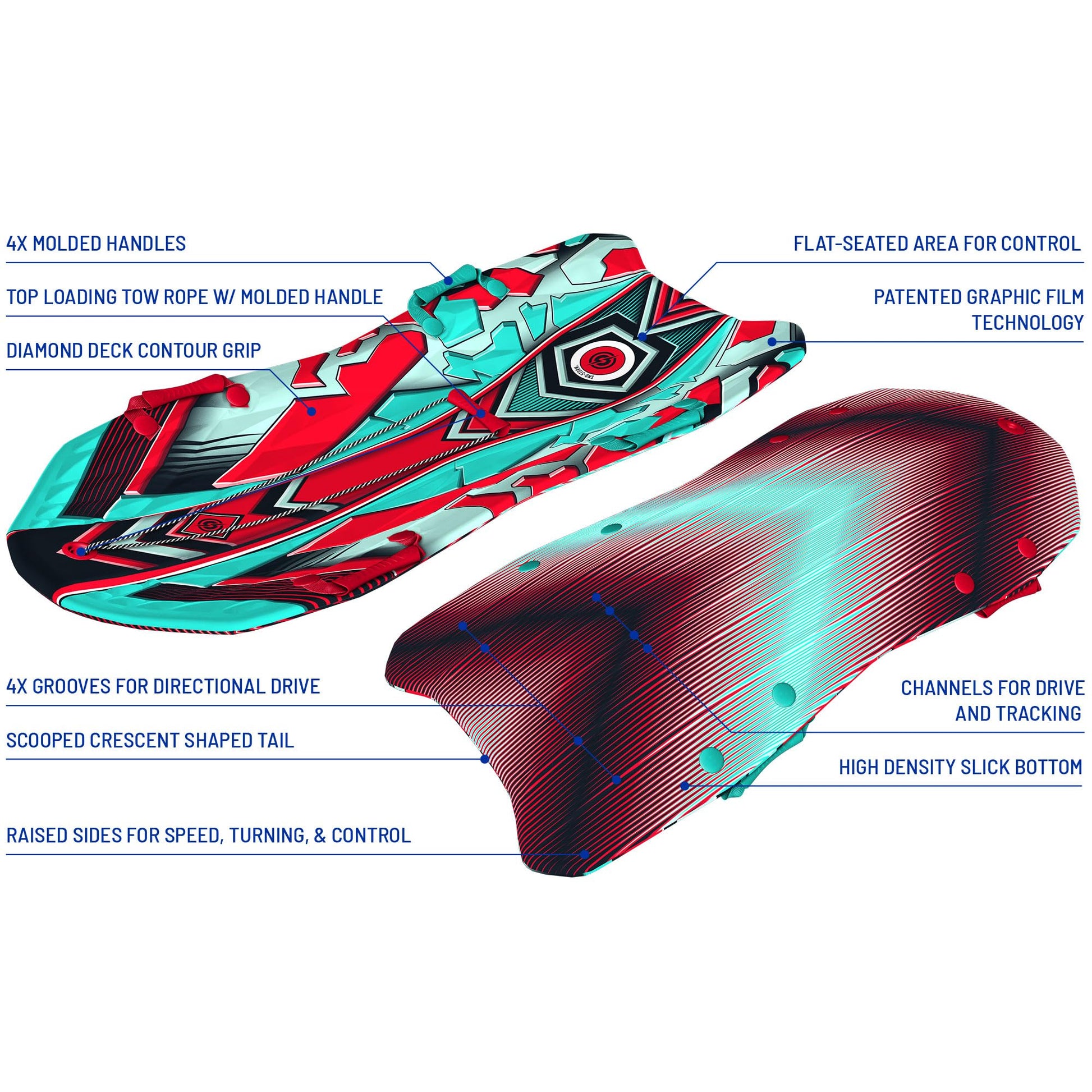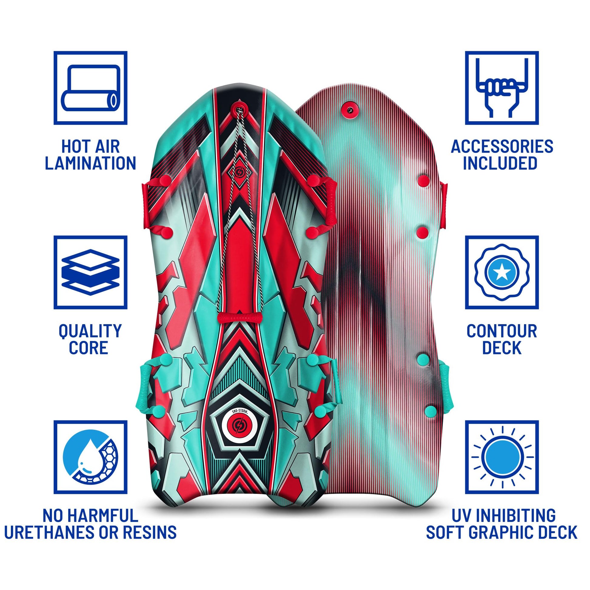 Built with a strong EPS (Expanded Polystyrene) foam core and a protective WBS (Water Barrier Skin) top deck, the Sno-Storm Snow Sled offers long-lasting durability in all winter conditions. The slick bottom features a precision-engineered Sector Channel design that increases acceleration, stability, and smooth directional steering, making every ride more controlled and thrilling.
