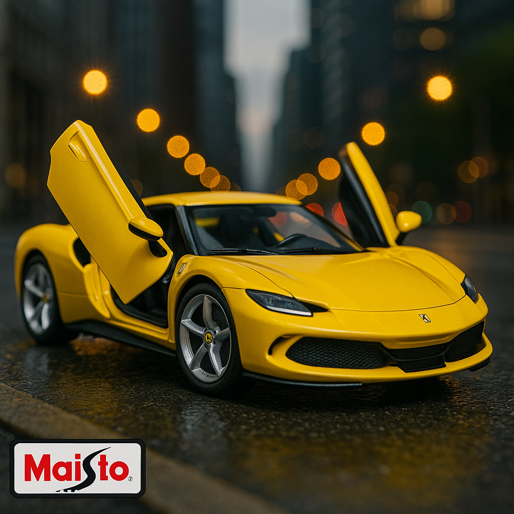 سيارة فيراري 296 GTB نموذج مصغر بمقياس 1:18 - من إنتاج شركة مايستو القابلة للتجميع