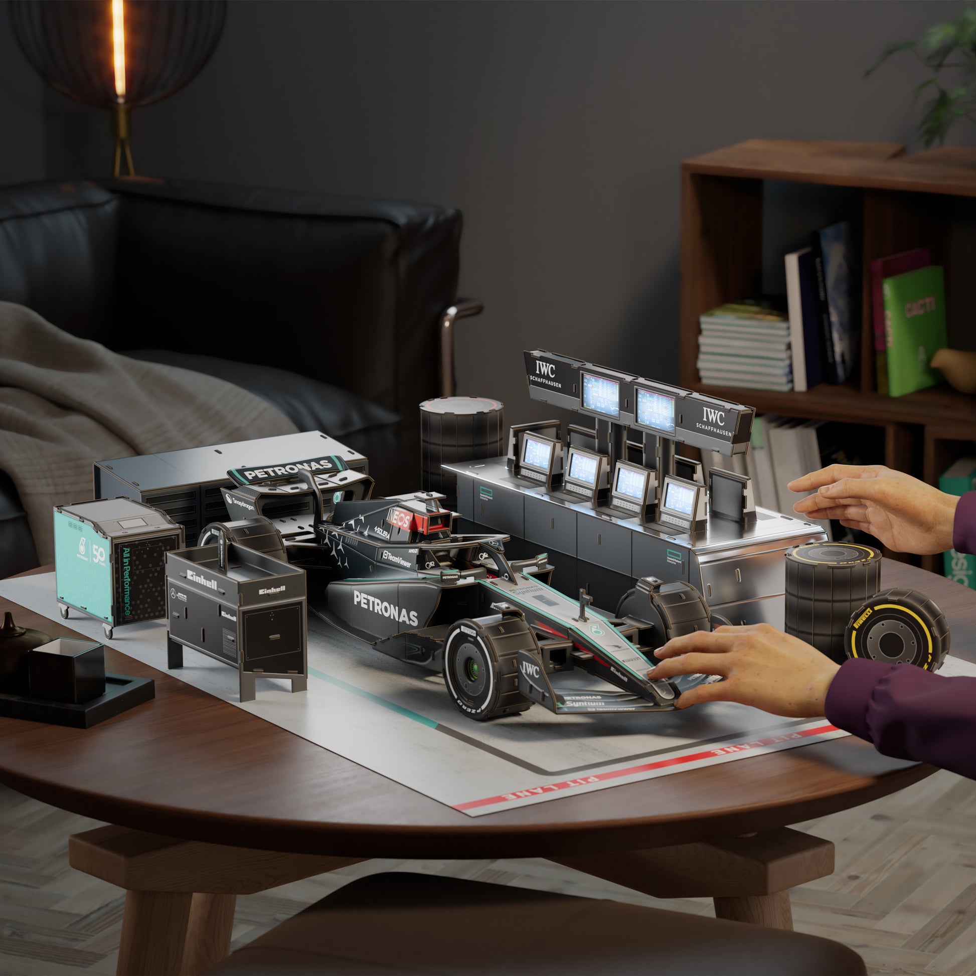Experience the excitement of Formula 1 engineering with the 4D Build Mercedes W15 Garage Set 3D Puzzle Model Kit with LEDs — a premium building experience that blends creativity, display art, and racing fandom! This officially licensed 3D model kit features 253 detailed punch-out pieces and includes everything you need to build an impressive Mercedes-AMG F1 W15 car with garage display enhanced by LED lighting for standout room décor or collector showcase.