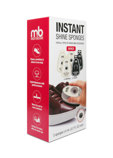 Whether you’re prepping for a workday, refreshing your footwear between events, or packing for a trip, the M&B Instant Shine Sponge 5-Pack gives you professional-looking shine without the fuss. Stay polished and confident with shoes and accessories that always look their best.